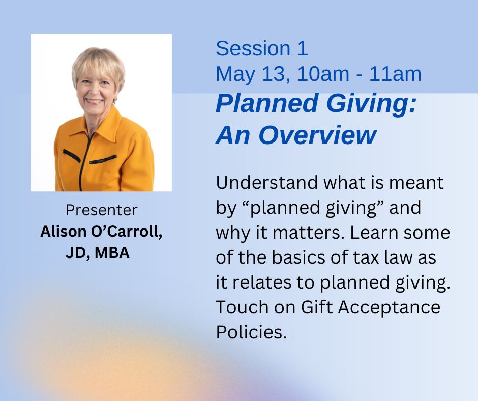 PG-13 Summer Session #1 Planned Giving: An Overview with Alison O'Carroll